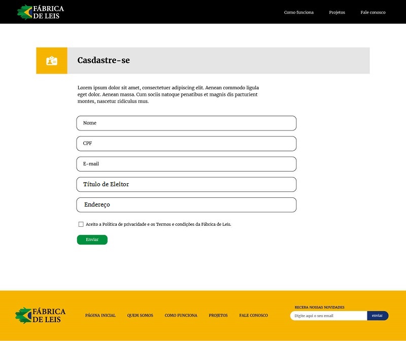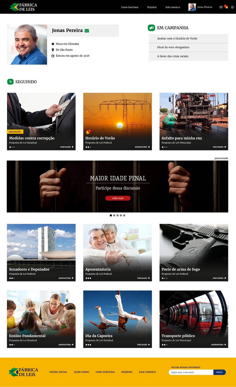 A constituição diz: todo poder emana do povo. A FÁBRICA DE LEIS devolve esse poder ao cidadão, podendo exercer sua cidadania como nunca foi possível antes, sem sair de casa, sem ter que se filiar a partido, de forma pacífica inteligente e intensamente participativa. Seja um elemento de transformação social!