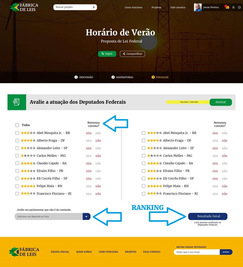 Na FÁBRICA DE LEIS, o cidadão poderá influenciar a vida política do país, muito mais que quando ele o faz pelo sistema representativo ao votar.